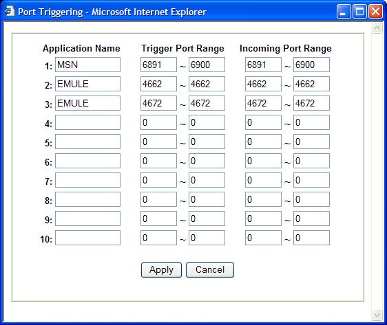 le bouton Port Triggering. Cliquez sur ce bouton