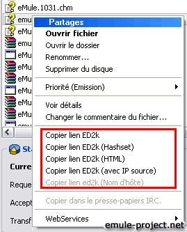 eMule supporte des moyens complexes de génération et d'utilisation de ces liens.